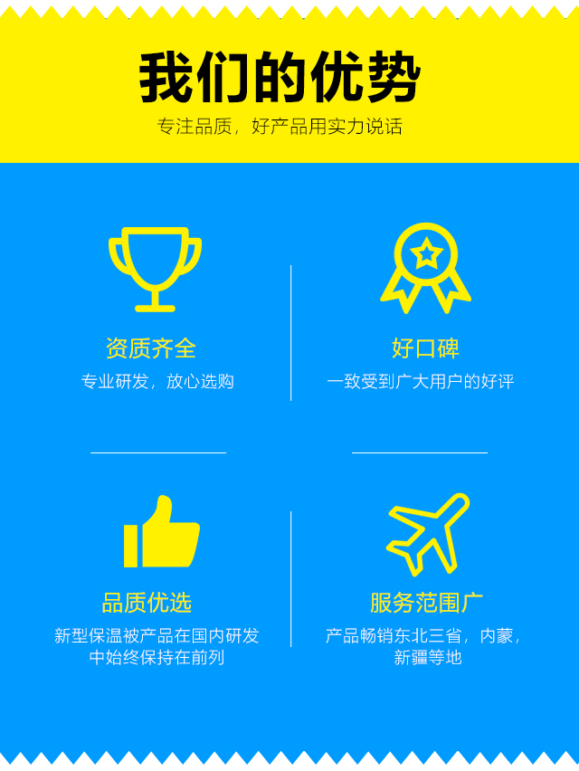 我們本著客戶之上,服務至上的原則,爭創(chuàng)國內保溫被行業(yè)的引導者。